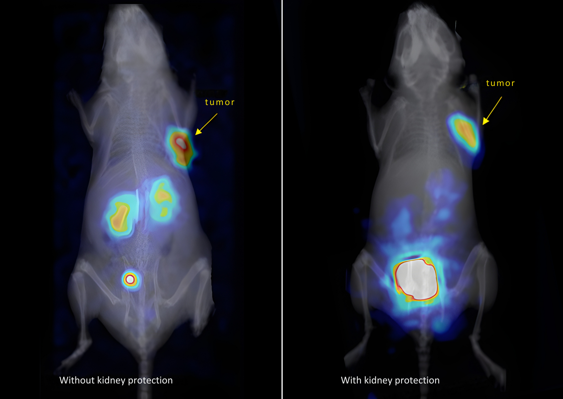 Assessing the efficacy of ¹¹¹In-DOTATATE in targeting tumors, with and without the use of tumor protection.